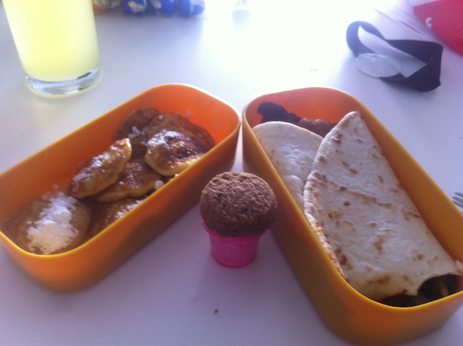 I will only post one bento this week. This is the one I took to school with me. Nick's were the same for two days and the last day he just took muffins and bread with him. In the bento there are some leftover beans in tomato sauce, Greek style, that we had for dinner. Some